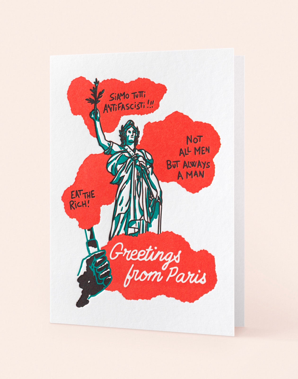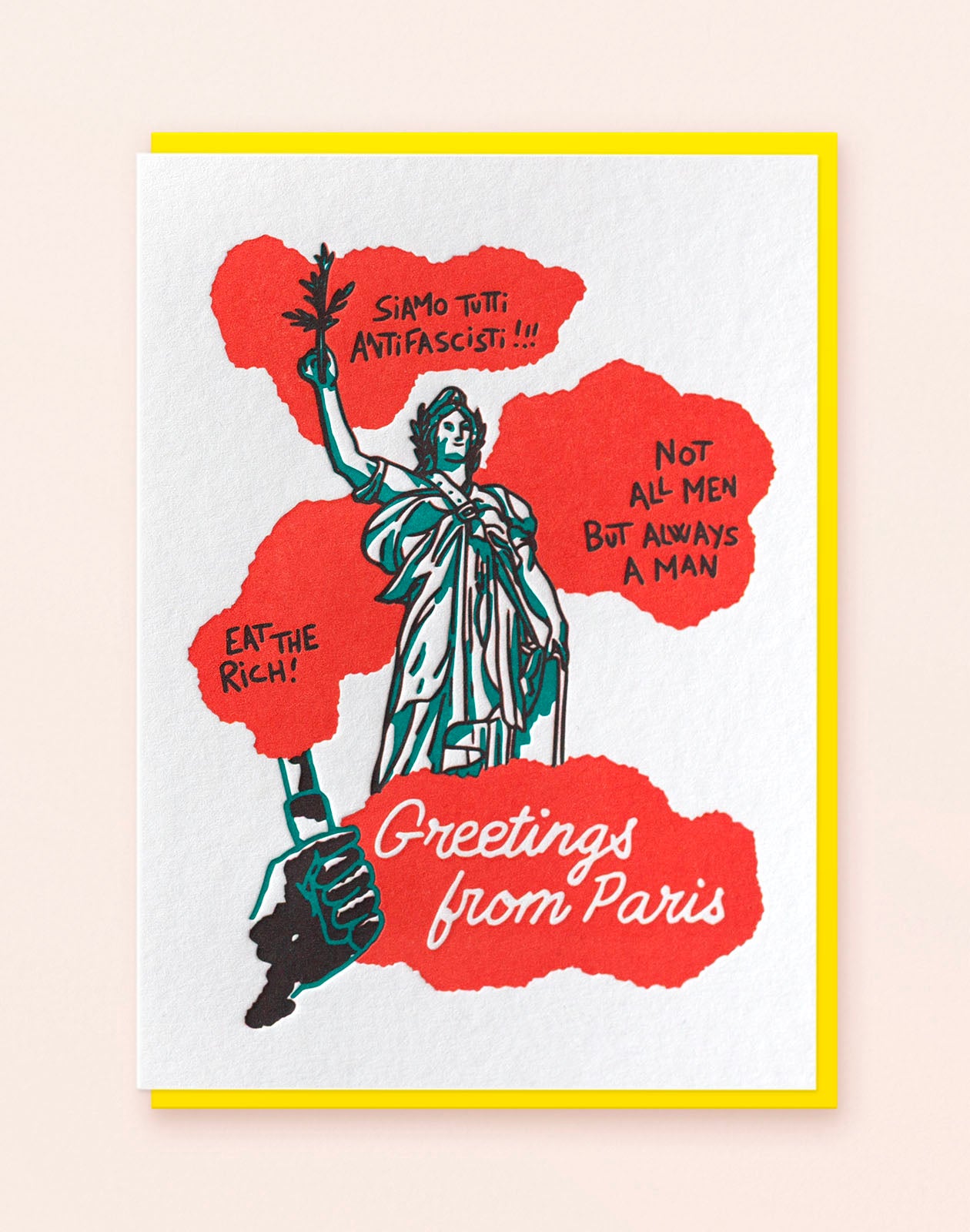 Carte double 11x15 cm Papier blanc naturel 350g certifié FSC Impression 3 couleurs Enveloppe jaune auto-adhésive Imprimé à ParisRéf.CD-090